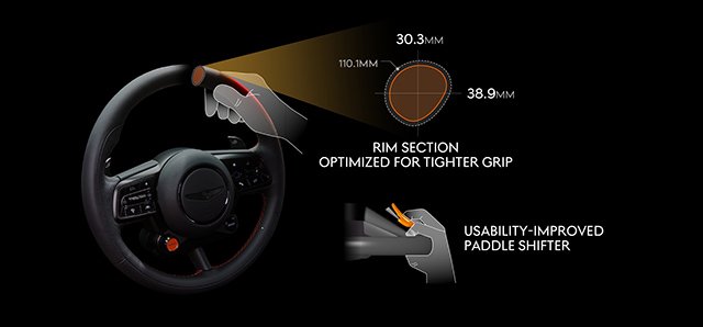 此外,方向盘还配备了换挡拨片,在减少手部疲劳的同时提升操控自由度,强化高性能纯电车型的驾控乐趣。