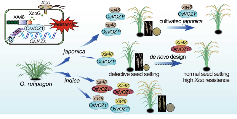 研究进一步发现,Xa48 基因在籼稻和粳稻中经历了差别驯化。该基因与下游免疫抑制蛋白 OsVOZ1 组成的模块会严重影响粳稻的产量,因此在数千年驯化过程中,Xa48 基因从粳稻基因组中被逐渐剔除,目前只存在于部分籼稻资源中。历史上,籼稻传统种植于白叶枯病频发的长江以南地区,而粳稻种植于水患较少的长江以北地区。随着农业灌溉体系逐步建立,长江以北地区白叶枯病发生减少,病原菌选择压力降低,导致 Xa48 仅保留在南方籼稻品种中。研究团队指出,这一结果也从侧面说明,自大禹治水以来中国农业水利灌溉体系的建立,间接影响了籼稻和粳稻的抗病性差异。