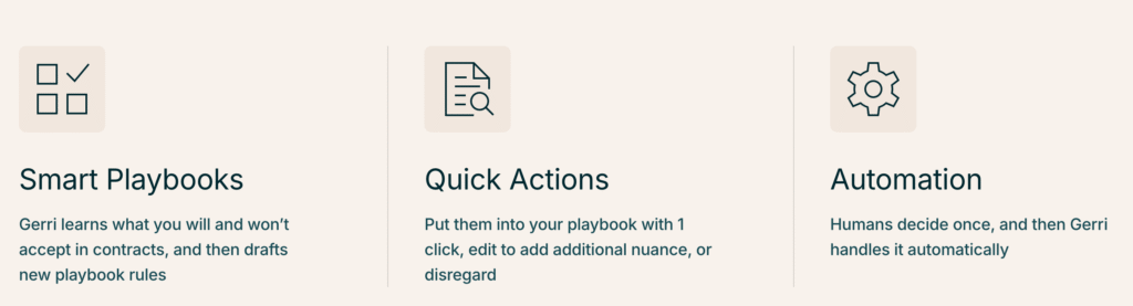 As to what Gerri does – which has its own branded website and pricing, which is separate from Common Paper’s standardised contracts offering – this is how it works: