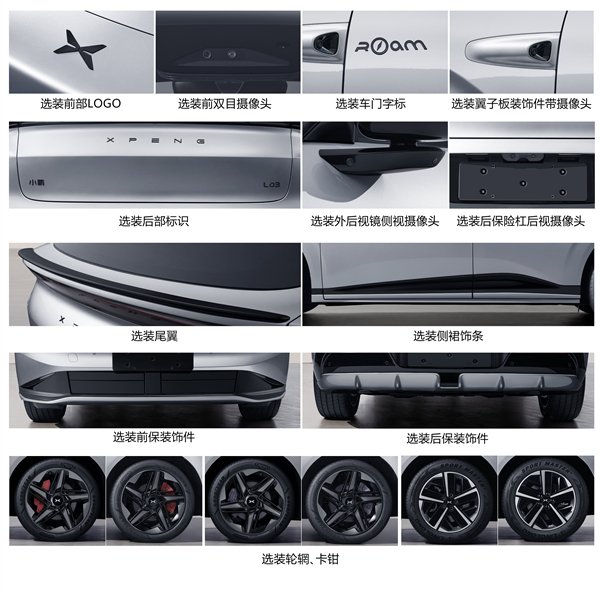 选装件较为丰富,如前部Logo、双目摄像头、车门字标、带摄像头的翼子板装饰件、尾翼以及丰富多样的轮圈,彰显年轻态。