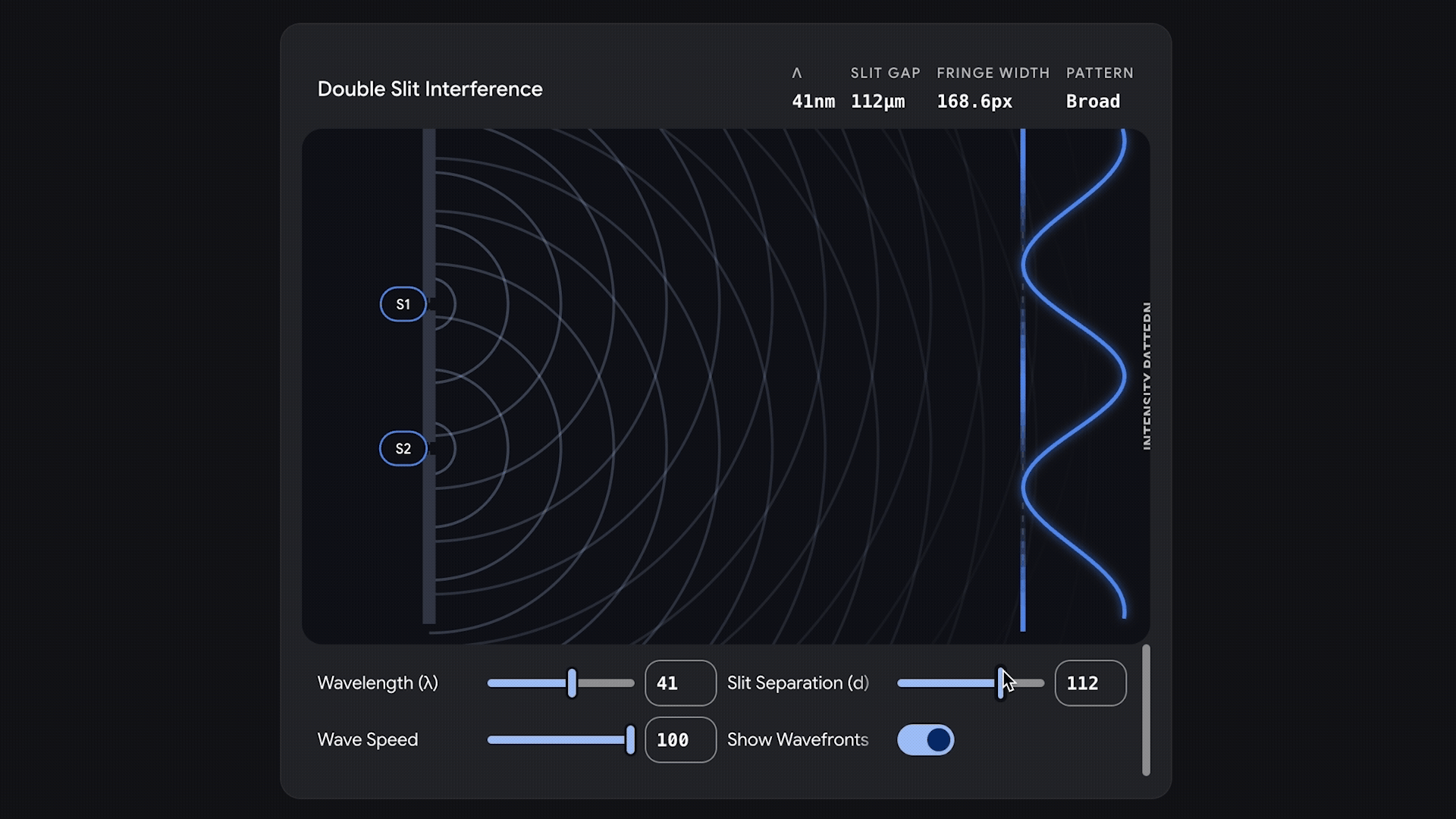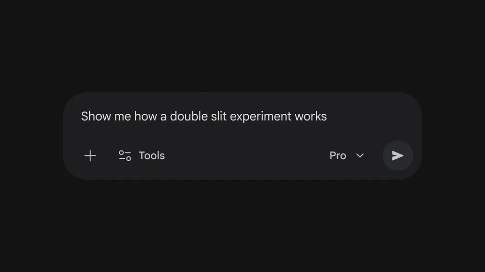 若用户想要探索量子物理领域,则可以输入“展示双缝实验如何运作”,Gemini 将提供波长、波速以及缝隙间距等参数选项,使波动变化能够实时呈现。