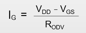 假设在该电路中,栅极驱动器供电电压 VDD 和 VSS 为±15V,栅极电阻 RODV 取值为1kΩ。当栅极电流处于毫安量级时,JFET 的栅-源电压 VGS 在室温条件下约为2.3V。栅极驱动电流可通过以下公式进行近似计算: