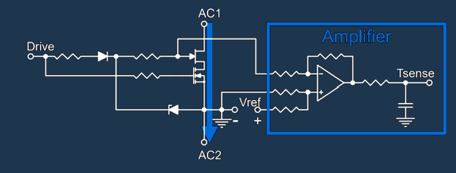 在这两种情况下,您都需要对二极管 D1 进行钳位,并跨接一个放大器,以测量该二极管两端的压降。此压降即代表 JFET 的漏源电压 VDS 。既然已知芯片温度就能轻松估算其导通电阻 RDS(on) ,您便可直接运用欧姆定律来估算漏极电流,而无需使用额外的传感器: