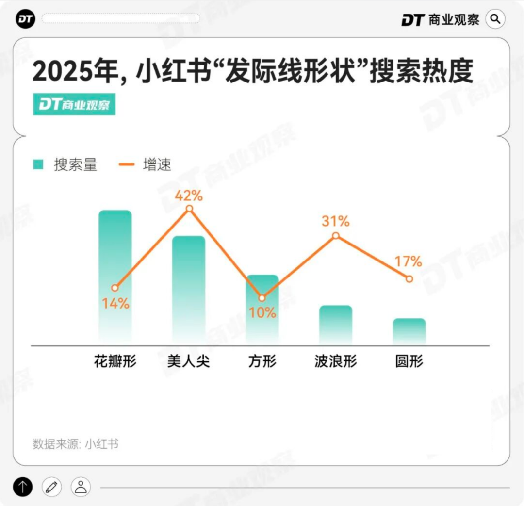 这种对美的追求,也催生出多种发际线流派,花瓣形、美人尖、方形、波浪形、圆形,在小红书上成为热门选择,适配不同脸型的审美需求。