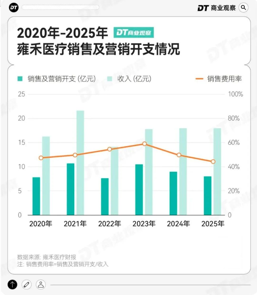 2024年,雍禾医疗的销售费用率为50.01%,相当于每赚1元就有0.5元投入销售营销。2025年,在大力缩减成本的前提下,销售费用率依然高达44.58%。