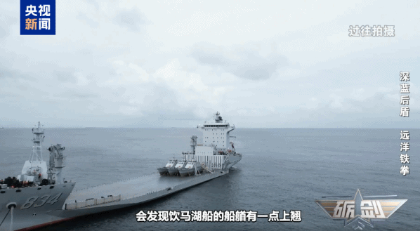 公开资料显示,饮马湖船主甲板长度超过 100 米、宽度达 30 余米。作为海上大型投送平台,该船具备成建制整体投送武器平台的能力。