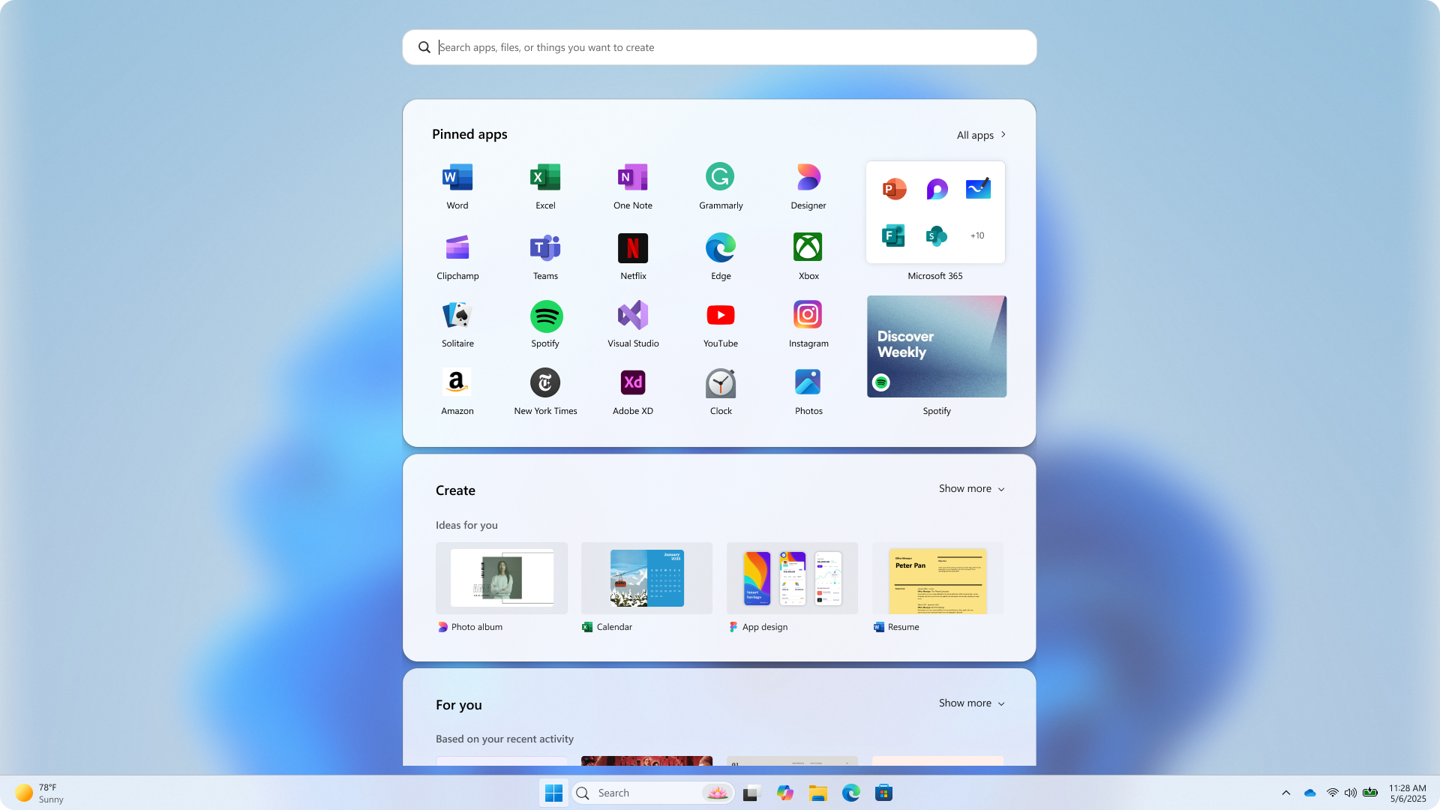 最显著的特征是在左侧引入了“For you”(为你推荐)专区,集成了 Teams、PowerPoint 及 Copilot 等小组件,并在右下角设置了独立的“创建”按钮。
