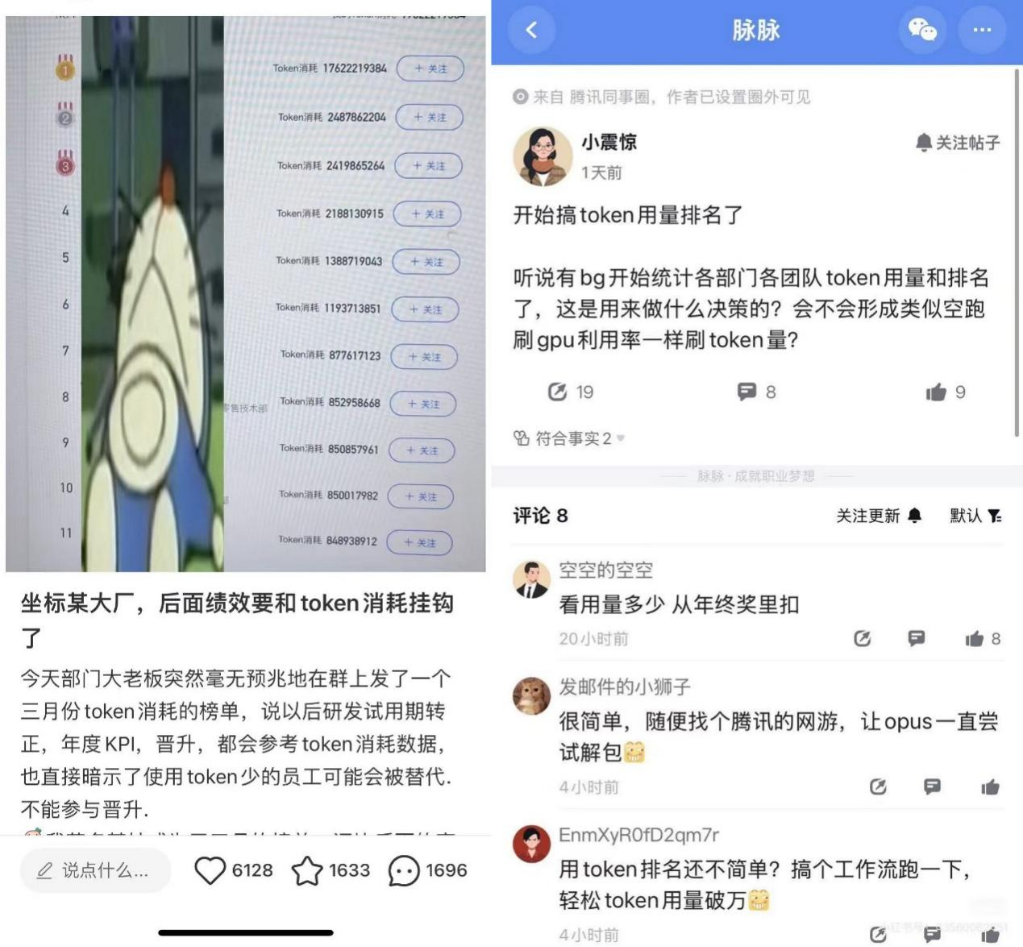 全球科技大厂也在推波助澜,比如鼓励员工多使用AI工具,Meta甚至列出了Token 消耗量排行榜,这已成为科技大厂的隐性KPI。