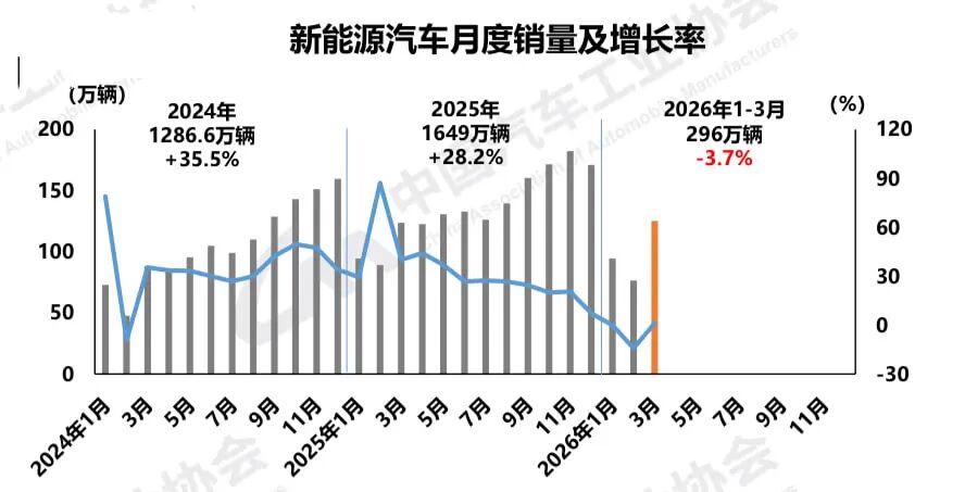 根据中汽协统计,2026年3月,中国汽车产销分别完成291.7万辆和289.9万辆,环比分别增长74.4%和60.6%,同比分别下降3%和0.6%。1月—3月,汽车产销累计完成703.9万辆和704.8万辆,同比分别下降6.9%和5.6%。