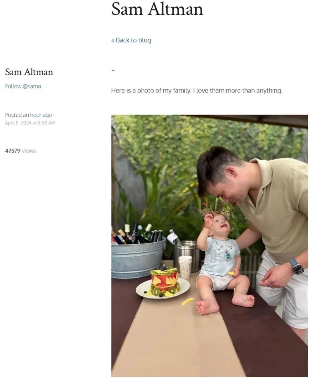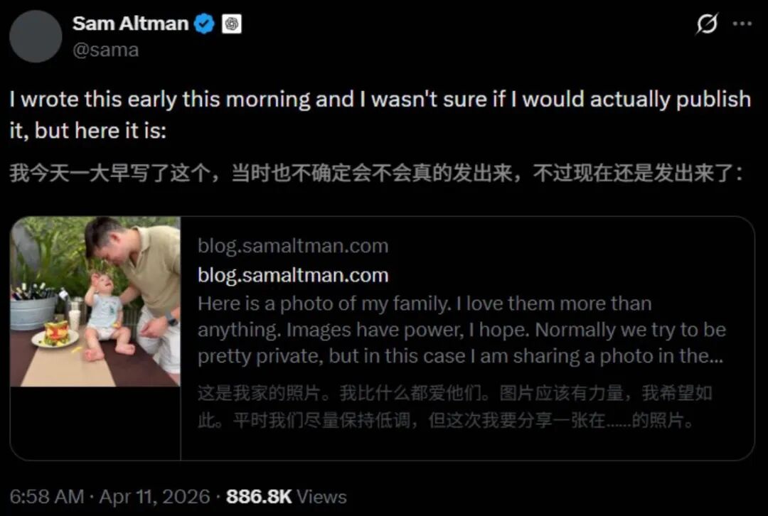 面对这起事件,奥特曼愤怒了!他罕见地公开全家福,并且深夜发表了一篇长文。
