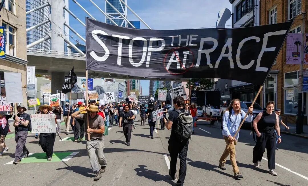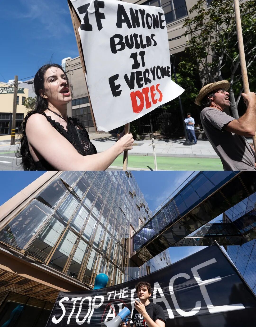 3月份,就曾爆发过一场美国史上最大规模的AI全球抗议活动,200人横跨Anthropic、OpenAI、xAI高喊「停止AI竞赛」!