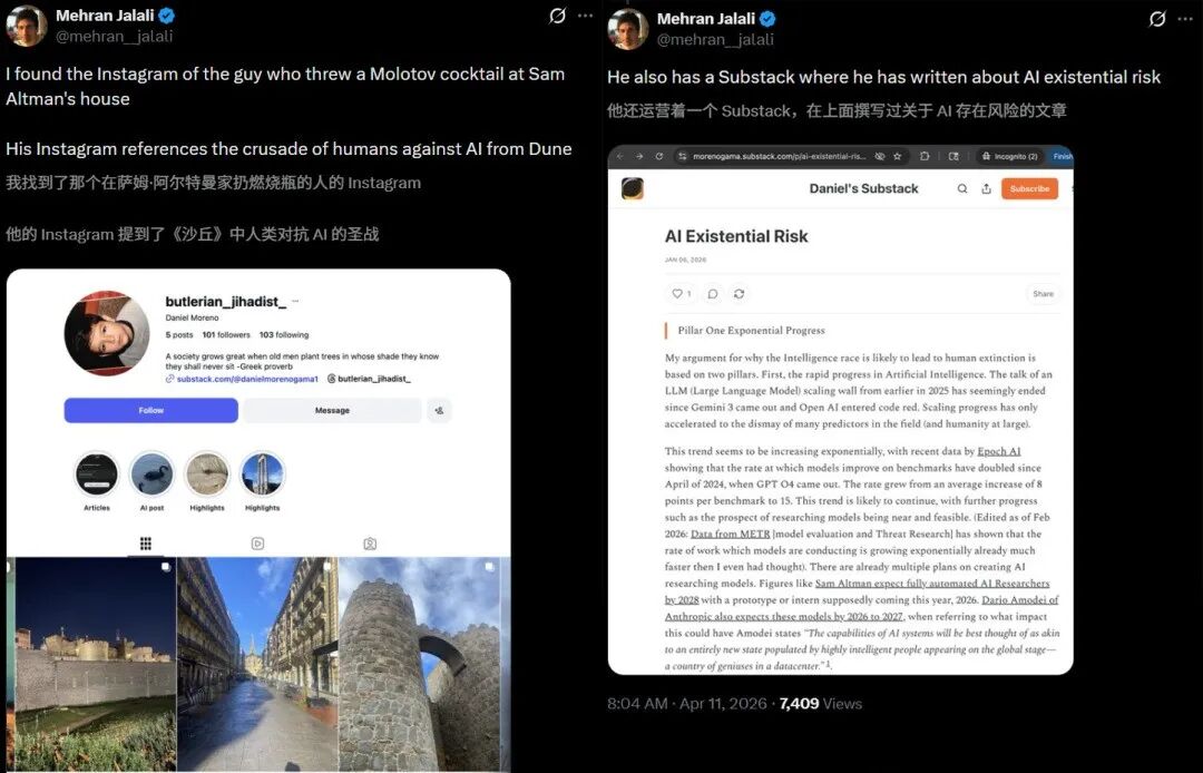 目前,扔燃烧瓶的嫌疑人被发现曾在Ins中提到《沙丘》中人类对抗AI的圣战。