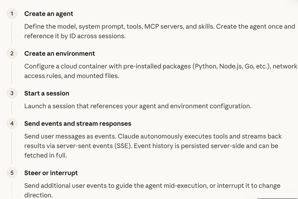 In a nutshell what Anthropic is doing here is providing a ‘fully managed agent harness’, i.e. all the bits and bobs, all the infrastructure needed, to set up and develop an agentic tool that can run on its own. But, it’s happening within the Claude universe. I.e. you go there and