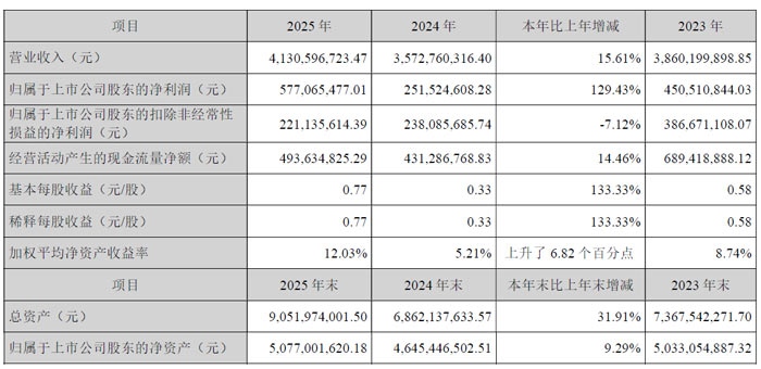 报告显示,2025 年厦门盈趣科技股份有限公司经营业绩实现复苏,迎来发展拐点,全年实现营业收入41.31 亿元,同比增长15.61%;归属于上市公司股东的净利润5.77 亿元,同比大幅增长129.43%;经营活动产生的现金流量净额4.94 亿元,同比增长14.46%,整体经营态势持续向好。