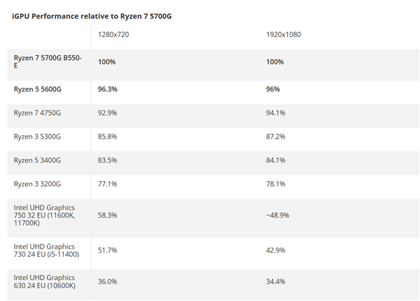 除了三大核心维度,这次测试还覆盖了核显游戏性能,AMD锐龙5000G系列APU依旧是核显领域的领头羊。