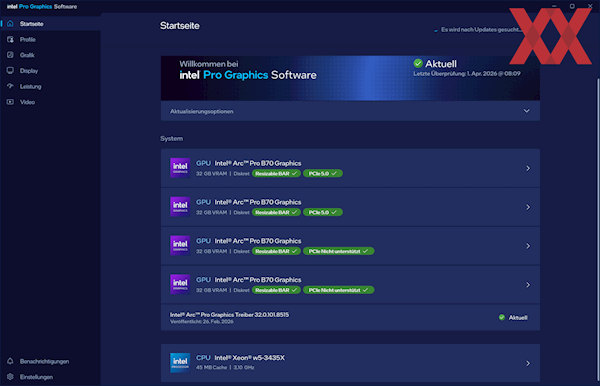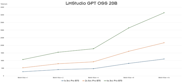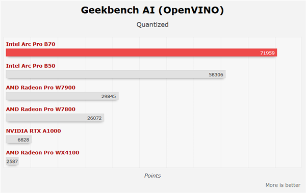 这次测试豪华地摆出了四块B70,都是公版,搭配16核心至强W5-3435X、八条16GB DDR5-4800,系统既有Windows 11也有Ubuntu。