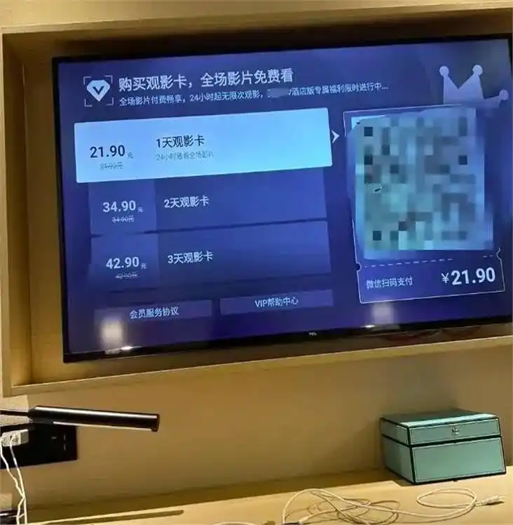 图源:@豆包说事如果你想在上面登自己的视频平台账号,你会发现系统之间完全不互通。酒店的观影卡通常是按天计费,一天的价格能顶上外面一个月的会员费。