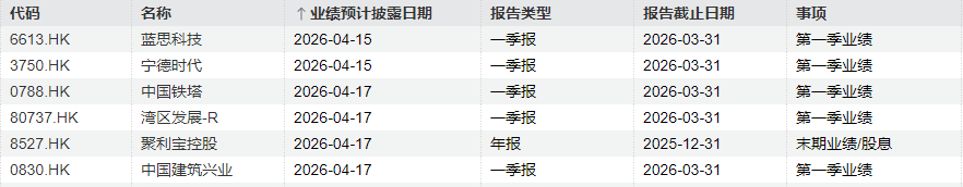 行业与产业科技方面,财报方面,台积电4月16日召开电话会,宁德时代与贵州茅台披露业绩,高盛、摩根大通等华尔街投行将验证金融与AI需求。同时,据传GPT-6将于4月14日发布。产业端,广交会与消博会同期开幕,数据中心液冷技术大会举行,半导体涨价潮蔓延。航天领域,长征十号乙预计4月19日在文昌首飞,验证全球首创海上网系回收技术。此外,群核科技作为“杭州六小龙”首家上市公司将于4月17日登陆港交所。