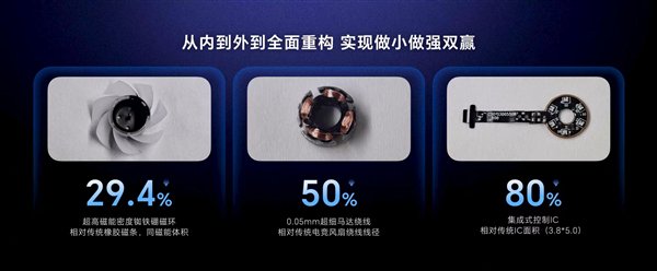 为此荣耀在马达层面进行了全面重构,马达直径从42mm缩小至10mm,转速仍保持20000+ RPM。