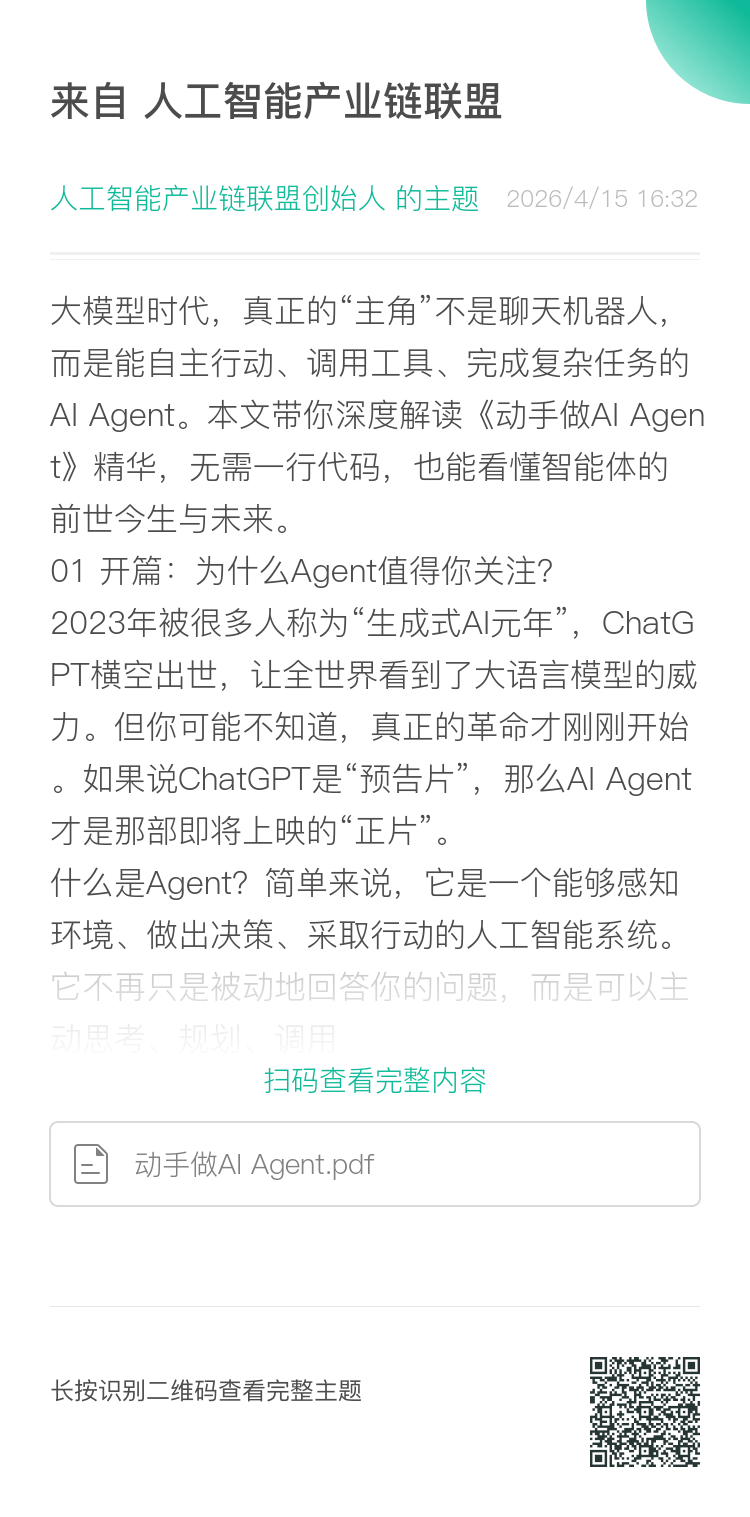 无论你是开发者、产品经理还是企业负责人,现在都是了解和掌握Agent技术的最佳时机。让我们一起,动手做AI Agent,开启人工智能时代的无限可能!