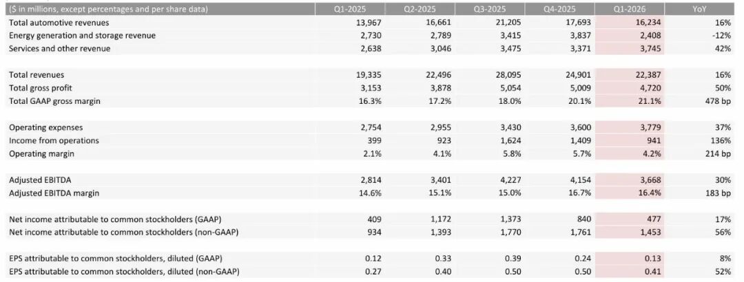 特斯拉2026年第一季度财务业绩