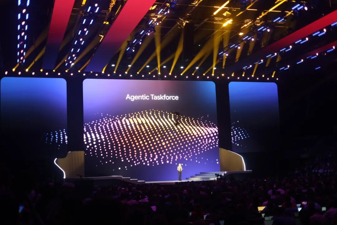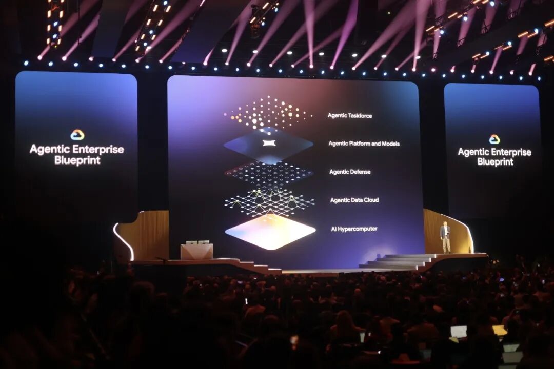 Kurian 在台上说:「试点时代结束了,智能体时代已经到来。真正的力量源自它如何改变你的工作流程。」
