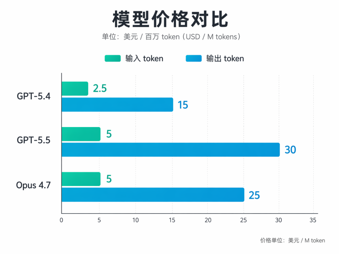 GPT-5.5 :5 美元 / M 输入 token,30 美元 / M 输出 token。