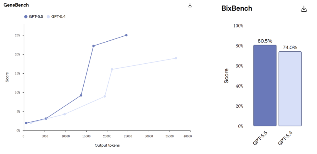 就是说在科研场景里,GPT-5.5 也在更省 token 的情况下,把有效输出抬得更快了。