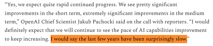 过去几年——外界看来AI狂飙的几年——在OpenAI首席科学家眼里是慢的。
