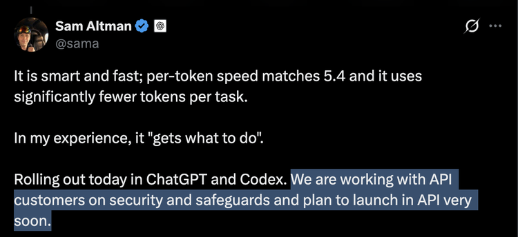 再看API延迟发布。官方说"working on security and safeguards"。客观效果:API上线前想用GPT-5.5,唯一路径是Codex生态。用户被锁进了应用层。