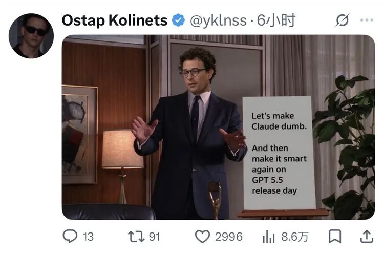 网友揶揄道:被用户指责了足足一个月后,在对手发布更强模型后你来承认和修复了。