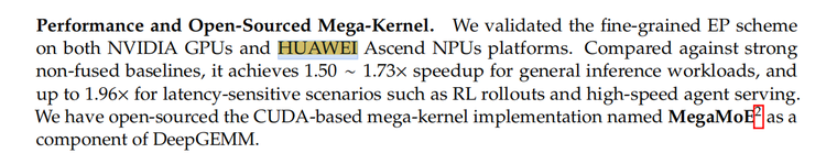 虽然开源 MegaMoE 内核还是 CUDA 版,主力训练集群大概率仍是 NVIDIA,但架构上已经把适配昇腾的土壤翻松了、路铺平了。
