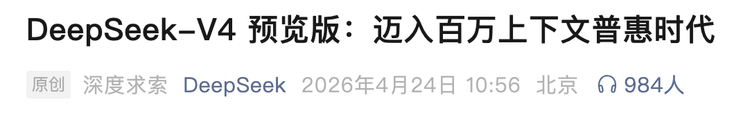「不诱于誉,不恐于诽,率道而行,端然正己。」这是DeepSeek官方公告里的一句与其他内容都不同的话,这句话也几乎是V4的特质,它让人继续对DeepSeek接下来的目标充满期待。