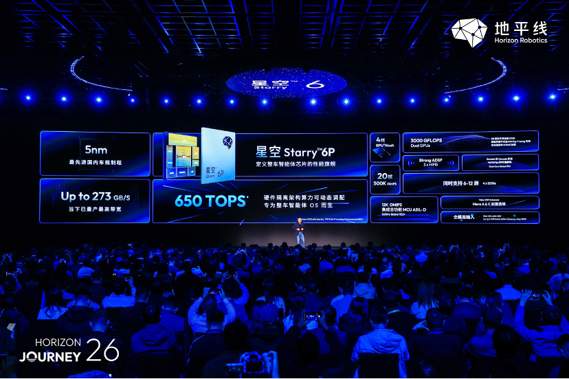 地平线这次带来了两款芯片:Starry 6P(650 TOPS)和 Starry 6H(500 TOPS)。背后的关键词,是舱驾融合。