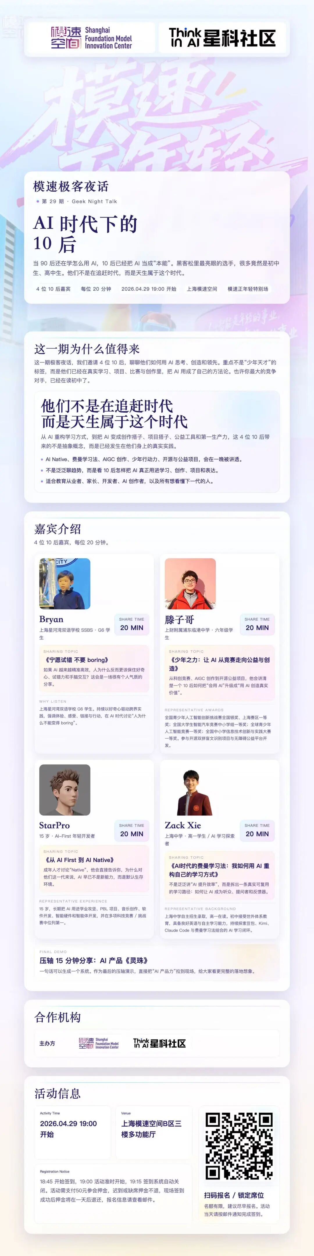 模速正年轻|模速极客夜话第29期:当大人还在学AI,10后已经“原生”了