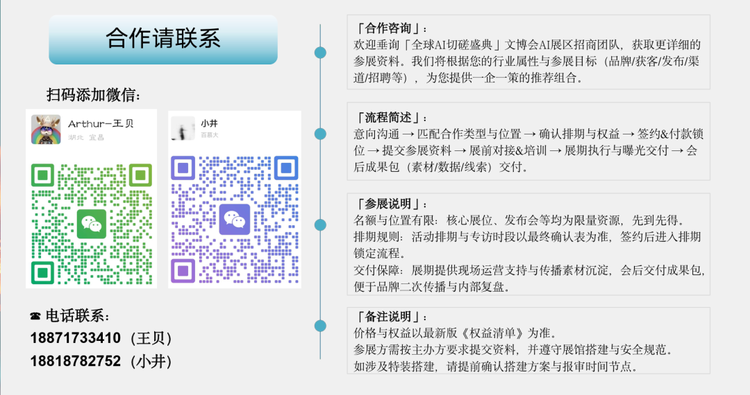 获取完整版招商方案 / 展位图 / 权益清单 / 合作模式等详细内容,可联系下方WaytoAGI招商团队。