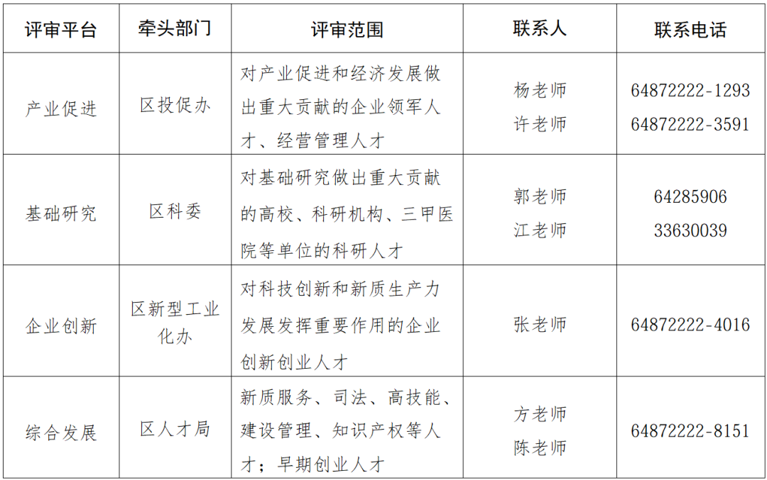 本轮区级人才计划选拔设立产业促进、基础研究、企业创新、综合发展四个评审平台。