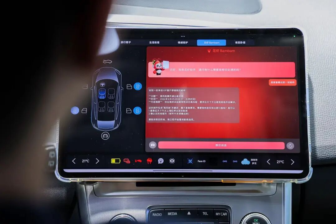 佑驾创新在北京车展发布了座舱智能管家“BamBam龙虾助手”,该产品同样定位为多智能体系统工具,可以主动规划行程、预订服务、处理邮件。BamBam还可以充分发挥视觉感知能力,实时捕捉用户的身份、疲劳度甚至情绪,将这些空间和状态信息与语言大模型融合,从而从“被动执行”变成“主动服务”。