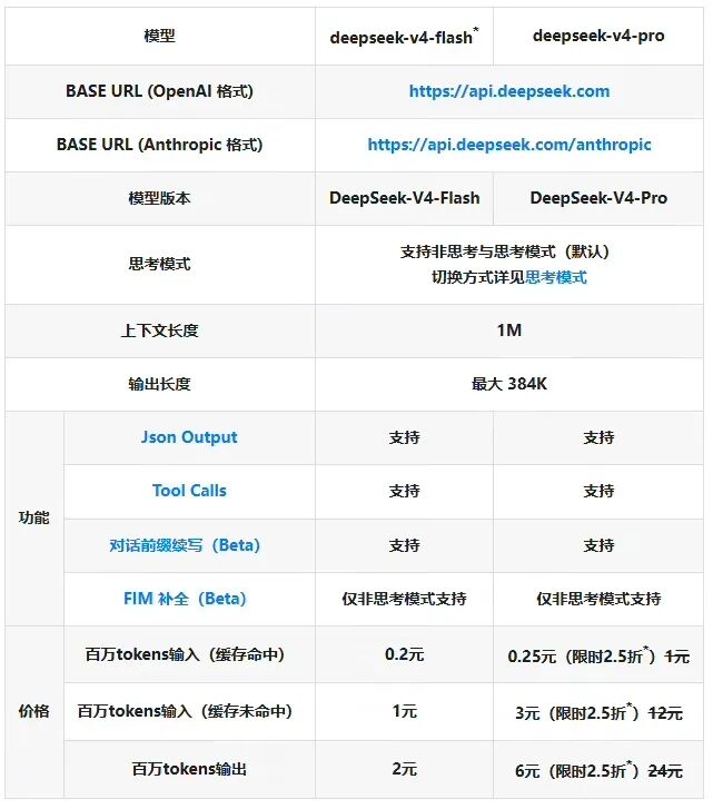 此次调价后,DeepSeek-V4-Pro 的输入价格(缓存命中)低至 0.25 元(每百万 tokens),输入价格(缓存未命中)为 3 元,输出价格为 6 元。此次优惠活动将持续至北京时间 2026 年 5 月 5 日 23:59。