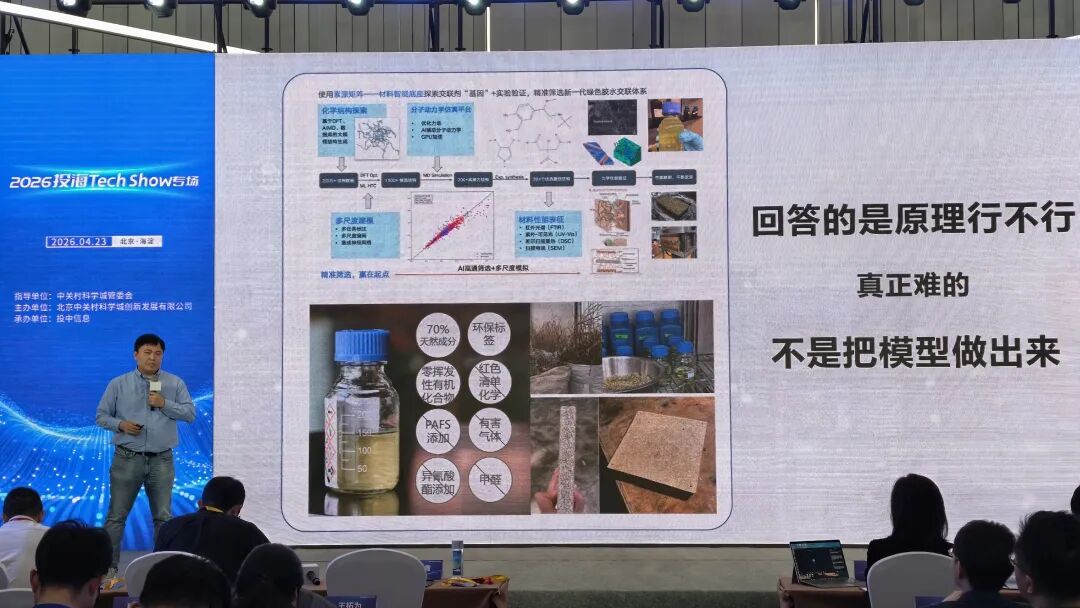 “2026投海Tech Show”路演现场,素源矩阵无醛胶水探索,图源:「甲子光年」现场拍摄