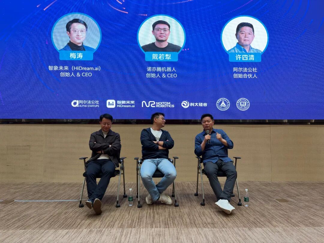 本次活动由阿尔法公社创始合伙人许四清发起并牵头,邀请加拿大工程院外籍院士、智象未来(HiDream.ai)创始人兼CEO梅涛,以及诺亦腾机器人创始人兼CEO戴若犁与到场同学面对面交流。两家企业均为阿尔法公社从天使轮开始重点投资、长期陪伴成长的标杆企业,两位创始人更是知名科大校友。本次活动三位师兄重返母校,倾授技术研发、产业落地与创业实践中的一线干货与独家观察。