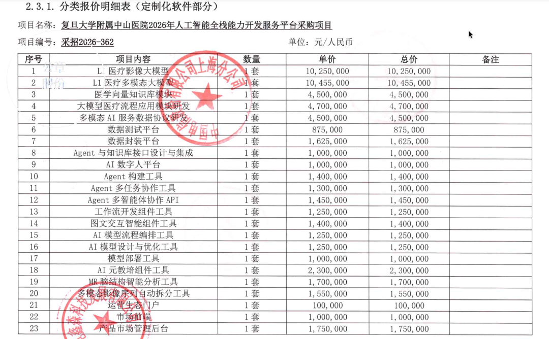 总额约3.13亿元!复旦大学附属中山医院AI全栈能力开发服务平台采购项目开标