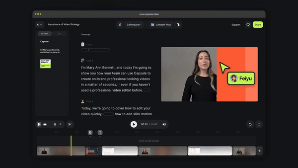 For instance, one person could focus on the beginning of the video while someone else tackles the ending. This joins the company’s existing commenting feature that allows teams to chat and leave notes at various points in the video.