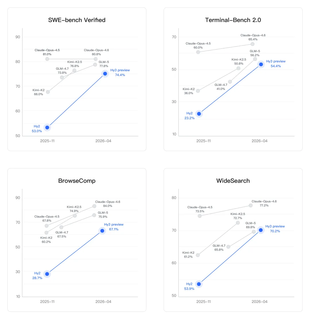也因此,在 Hy3 preview 中,团队自建了50多个评测基准来评估模型的实际能力和落地性。一发布就整合进腾讯大生态。