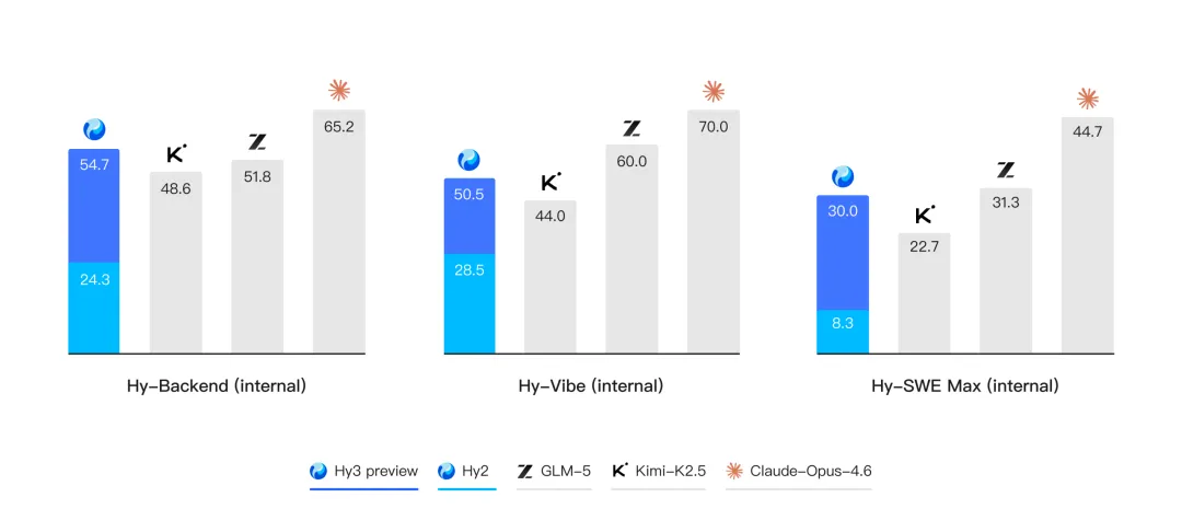 涵盖后端工程任务的 Hy-Backend、贴近真实用户开发交互的 Hy-Vibe Bench,以及高难度软件工程开发任务集 Hy-SWE Max。在这些高压测试环境下,它依然表现强劲。