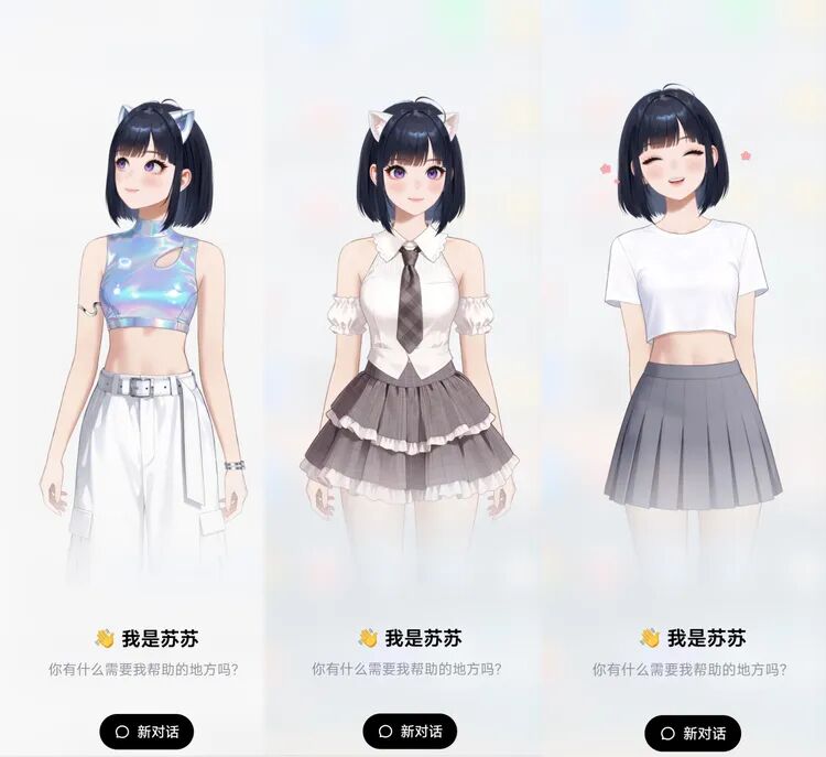 在 Senticat 中,SUSU 一直“在旁边”——有自己的小情绪,会开心,会思考,偶尔会犯困,会发表情包和颜文字,还有三套装扮可以切换。