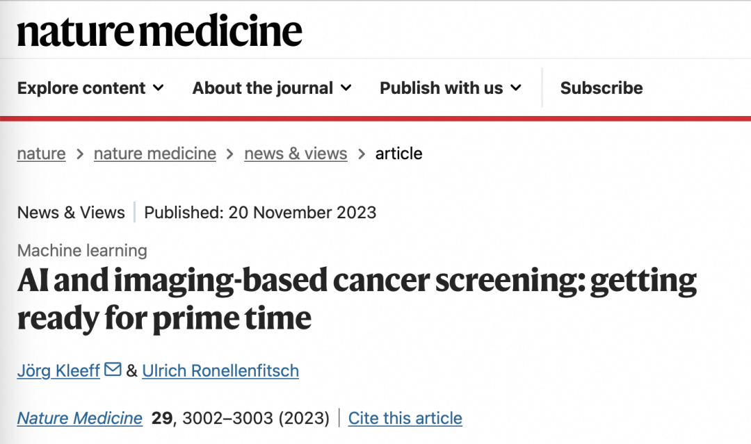 2023年,Nature Medicine评论文章预言——"基于影像AI的癌症筛查即将进入黄金时代"。