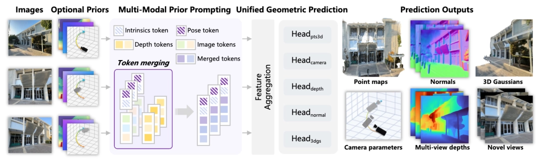 ,一次性预测密集点云、多视角深度图、表面法线及相机参数,一次生成永久可复用。未来,室内装修预览、城市规划、文化遗产保护等场景,都可以基于这一能力实现快速构建和还原。