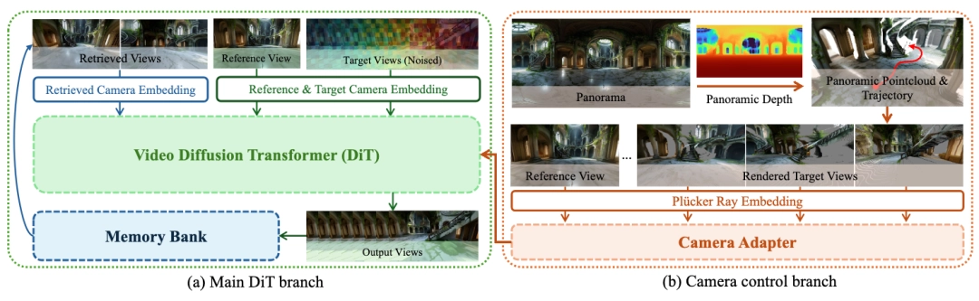 这一步的关键创新在于“精确的相机控制 + 细粒度视觉细节保持 + 空间一致性记忆机制”,这一套流程可以确保新生成的区域与已有区域在几何和视觉上完美衔接,不会“穿帮”。通过记忆力机制的设计以及体系化的中间训练和后训练,团队打造了目前业界最强的新视角生成(NVS)模型 HY-WorldStereo。生成画面对输入相机的精准跟随,且多条运镜的生成结果保持空间一致不会有冲突;通过后训练算法的设计,使得保持快速生成的同时画面质量不会衰减。