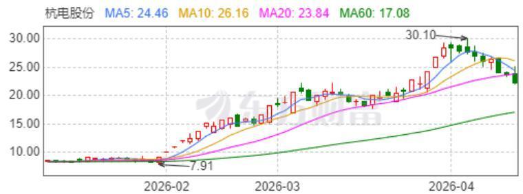 2026年以来,杭电股份(603618)股价一路突破历史高位,从不足8元一路攀升至30元上方,在震荡下行的电力设备板块中走出了一段独立且凌厉的行情。
